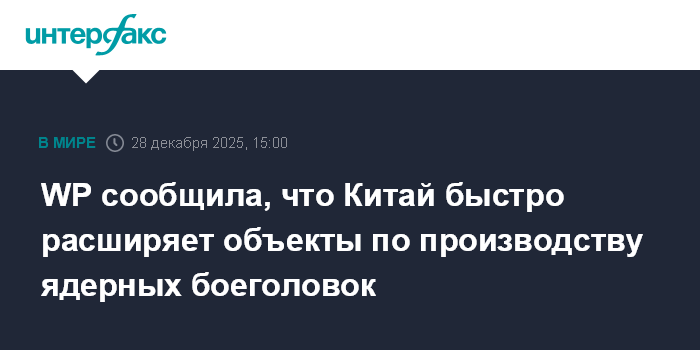 Газета отмечает, что "Пекин резко нарастил активность на ключевых объектах по производству ядерных боеголовок, с взрывным расширением работ с 2021 года".