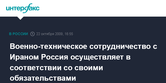 Военно-техническое сотрудничество с Ираном Россия осуществляет в соответствии со своими обязательствами