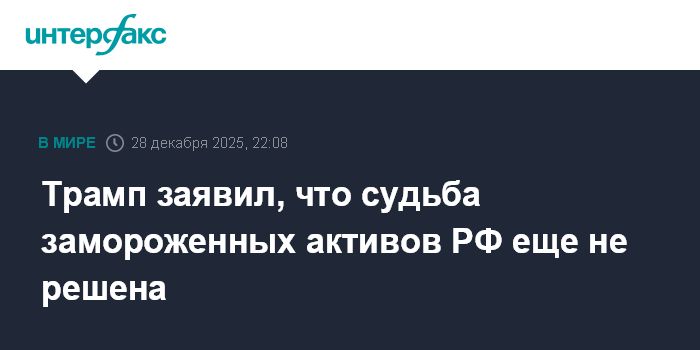 Москва. 28 декабря. INTERFAX.RU - Президент США Дональд Трамп заявил, что пока рано говорить о том, как будут использованы замороженные активы РФ при украинском урегулировании.
