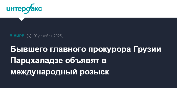 Москва. 29 декабря. INTERFAX.RU - Бывший главный прокурор Грузии Отар Парцхаладзе будет привлечен к ответственности по делу об убийстве в марте 2025 года в Тбилиси бизнесмена Левана Джангвеладзе, сообщил на брифинге в понедельник замминистра внутренних дел Александр Дарахвелидзе.