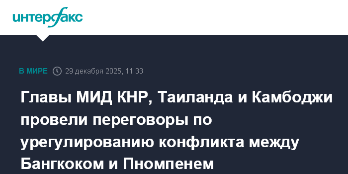 Главы МИД КНР, Таиланда и Камбоджи провели переговоры по урегулированию конфликта между Бангкоком и Пномпенем