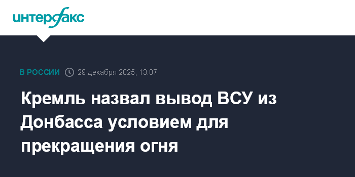 Кремль назвал вывод ВСУ из Донбасса условием для прекращения огня