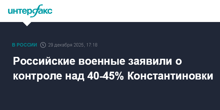 Москва. 29 декабря. INTERFAX.RU - Российские подразделения ведут бои за металлургический завод в Константиновке, сообщил в докладе президенту Владимиру Путину командующий группировкой "Южная" Сергей Медведев.