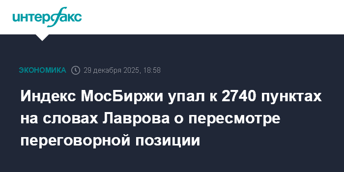 Индекс МосБиржи упал к 2740 пунктах на словах Лаврова о пересмотре переговорной позиции