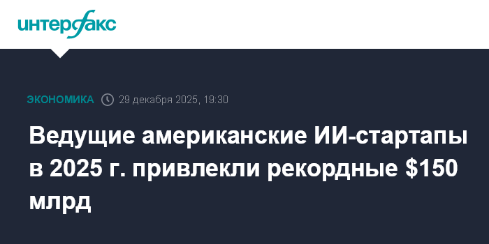 Ведущие американские ИИ-стартапы в 2025 г. привлекли рекордные $150 млрд