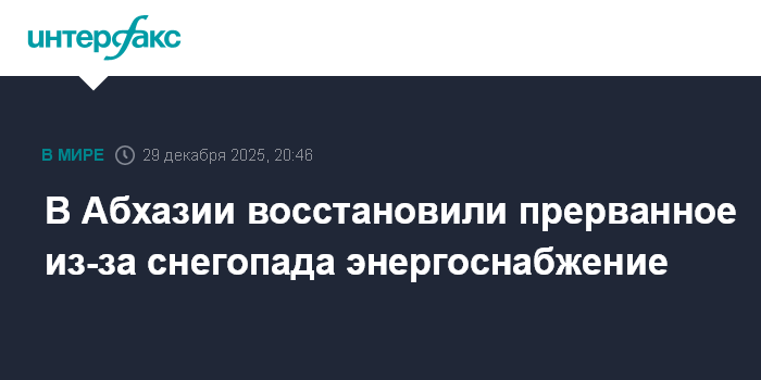 Москва. 29 декабря. INTERFAX.RU - Снегопад в Абхазии вызвал задержку поездов и отключение электричества по всей республике.