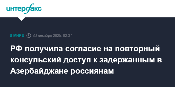 РФ получила согласие на повторный консульский доступ к задержанным в Азербайджане россиянам