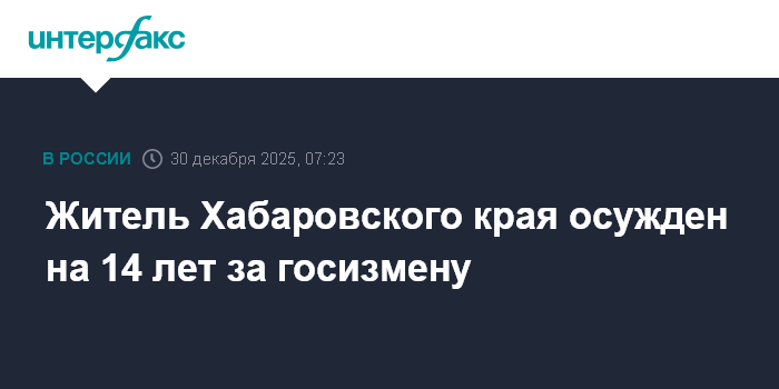 Житель Хабаровского края осужден на 14 лет за госизмену