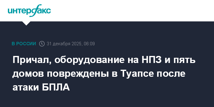 Причал, оборудование на НПЗ и пять домов повреждены в Туапсе после атаки БПЛА