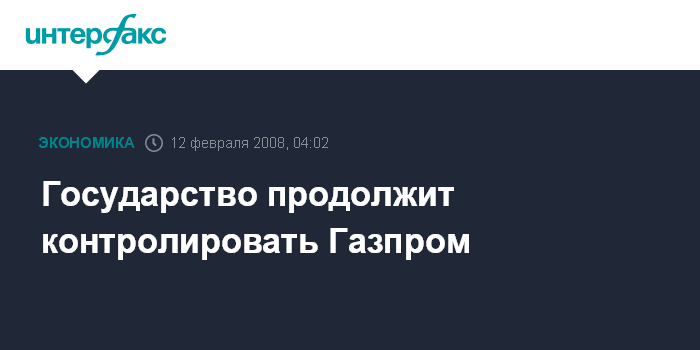 Москва. 12 февраля. INTERFAX.RU - Государство продолжит контролировать ситуацию в "Газпроме", заявил президент России Владимир Путин.