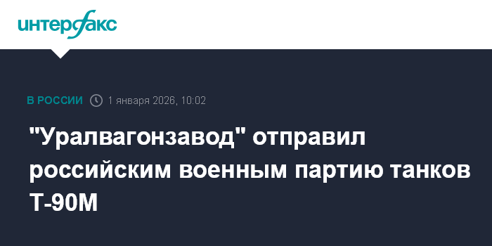 Москва. 1 января. INTERFAX.RU - Российским войскам в преддверии Нового года отправлена партия танков Т-90М "Прорыв", сообщила в четверг пресс-служба концерна "Уралвагонзавод" (УВЗ, входит в "Ростех").