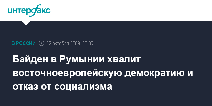 Вашингтон. 22 октября. INTERFAX.RU - Вице-президент США Джо Байден призывает восточноевропейские страны стать примером для развивающихся демократий по всему миру, сообщает в четверг газета New York Times.