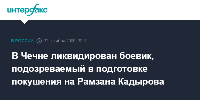 Грозный. 22 октября. ИНТЕРФАКС-ЮГ - Боевик, причастный к совершению серии тяжких преступлений на территории Чечни, уничтожен в ходе спецоперации в Грозном, сообщил "Интерфаксу" командир спецподразделения "Р" ОМСН "Терек" ГУ МВД РФ по ЮФО полковник Абуезид Висмурадов.