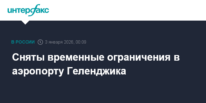 Москва. 3 января. INTERFAX.RU - Геленджике сняты ограничения на прием и выпуск воздушных судов, сообщил представитель Росавиации Артем Кореняко в своем телеграм-канале.