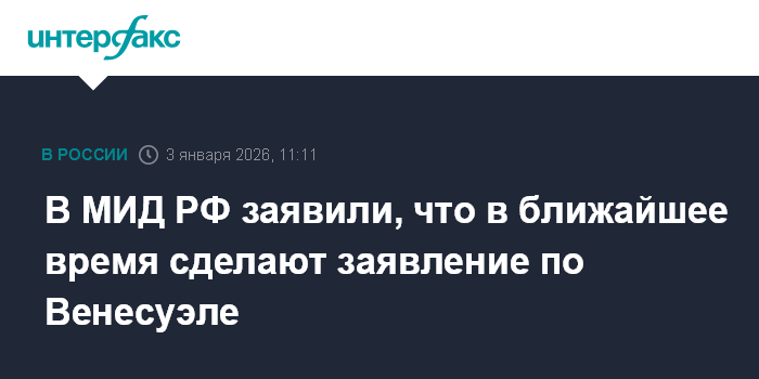 "В ближайшее время МИД сделает заявление в связи с агрессией США против Венесуэлы", - сказала она "Интерфаксу".