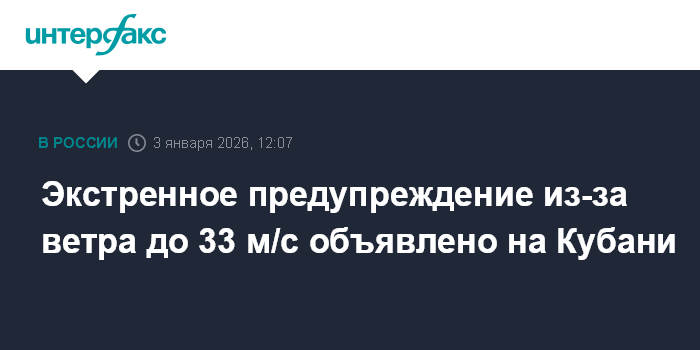 Экстренное предупреждение из-за ветра до 33 м/с объявлено на Кубани