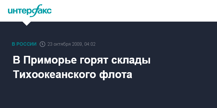 Владивосток. 23 октября. ИНТЕРФАКС - ДАЛЬНИЙ ВОСТОК - Вещевые склады Тихоокеанского флота (ТОФ) горят в Надежденском районе Приморья.
