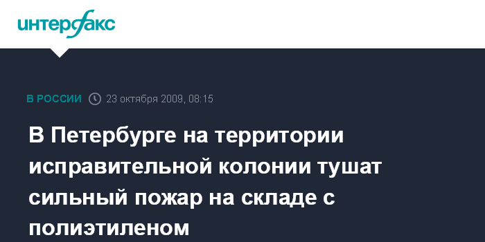 Москва. 23 октября. INTERFAX.RU - В Петербурге утром в пятницу возник сильный пожар на территории исправительной колонии N6, сообщили "Интерфаксу" в ГУ МЧС по Северной столице.