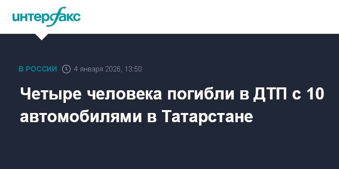 Москва. 4 января. INTERFAX.RU - Массовое ДТП с участием не менее 10 автомобилей произошло в Татарстане, погибли четыре человека, сообщает прокуратура республики в воскресенье.