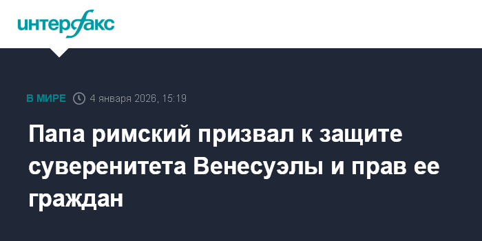 Москва. 4 января. INTERFAX.RU - Папа римский Лев XIV в воскресенье призвал предпринять усилия для нормализации обстановки в Венесуэле и помощи ее жителям, передает Vatican News.
