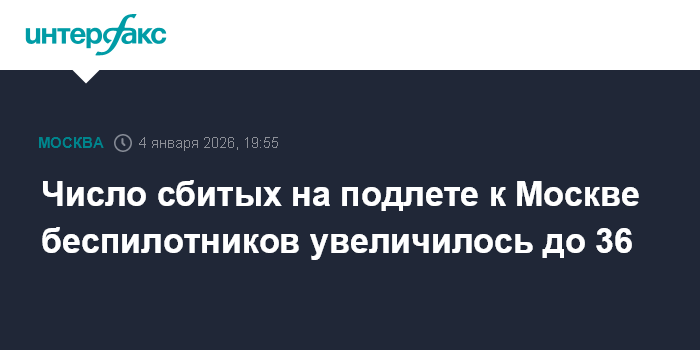 Число сбитых на подлете к Москве беспилотников увеличилось до 36