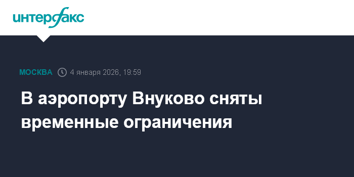 Москва. 4 января. INTERFAX.RU - Ограничения на прием и выпуск самолетов сняты в аэропорту Внуково, сообщили в телеграм-канале Росавиации.