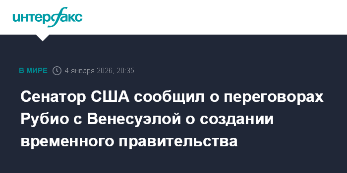 Москва. 4 января. INTERFAX.RU - Госсекретарь США Марко Рубио находится в контакте с членами правительства Венесуэлы, а также с представителями оппозиции по вопросу о формировании временного правительства, заявил председатель комитета Сената США по разведке Том Коттон.