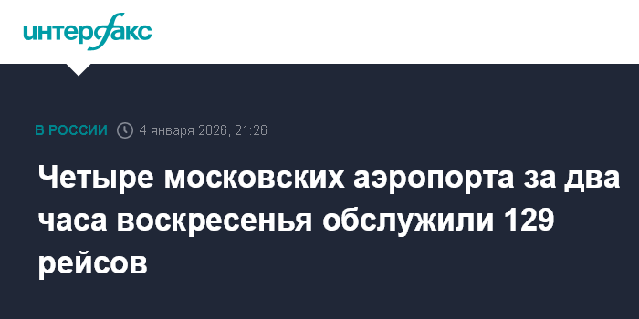 "129 воздушных судов на прилет и вылет обслужили аэропорты московского региона - Шереметьево, Внуково, Домодедово и Жуковский - с 18:00 до 20:00 мск сегодня (в воскресенье, 4 января)", - написал он в мессенджере Max.