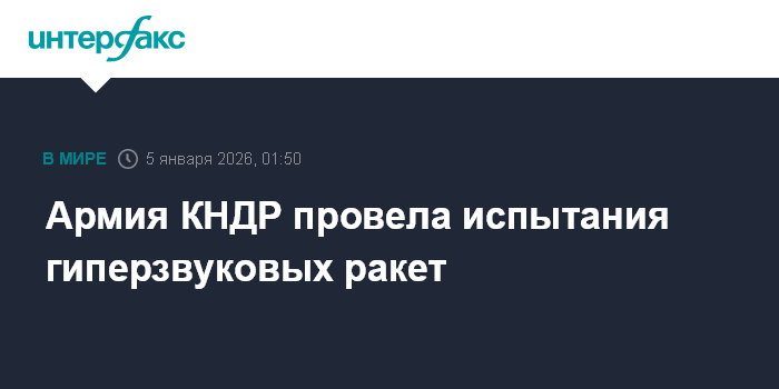 Москва. 5 января. INTERFAX.RU - Северная Корея провела испытания гиперзвуковых ракет в воскресенье, за учениями наблюдал Ким Чен Ын, сообщает ЦТАК.