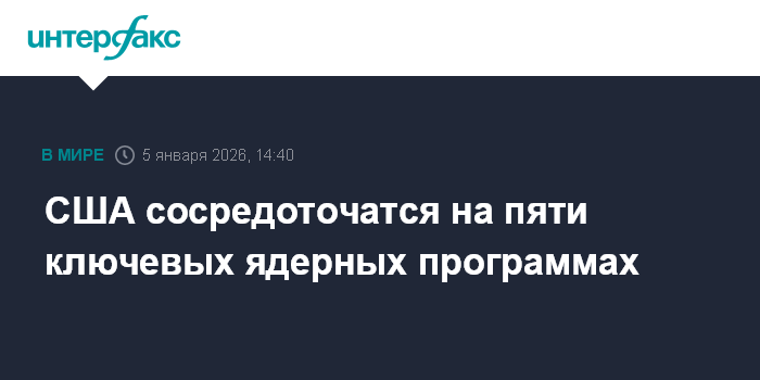 Москва. 5 января. INTERFAX.RU - Соединенные Штаты в рамках проводимой масштабной модернизации всего ядерного арсенала в предстоящие годы сосредоточатся на реализации пяти ключевых программ, следует из данных Федерации американских ученых и Национального агентства по ядерной безопасности (NNSA).