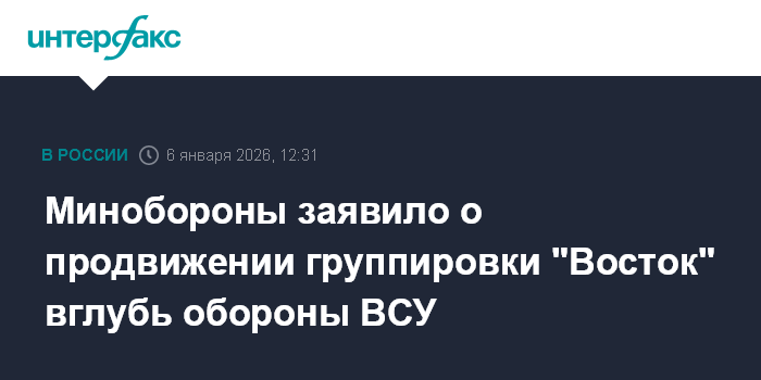 Минобороны заявило о продвижении группировки "Восток" вглубь обороны ВСУ