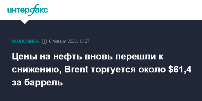 Москва. 6 января. INTERFAX.RU - Цены на нефть вновь перешли к снижению на торгах во вторник.