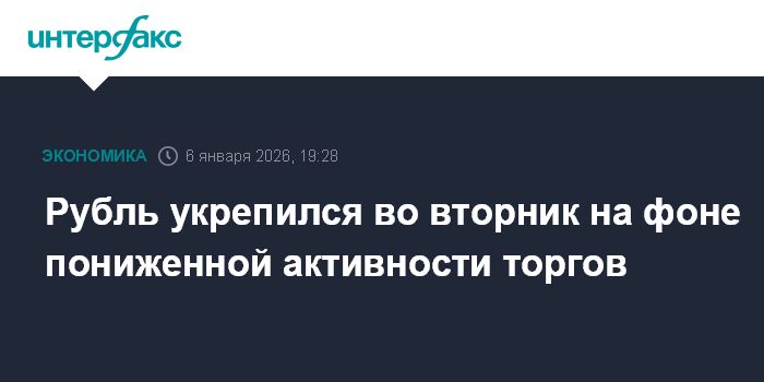 Москва. 6 января. INTERFAX.RU - Китайский юань умеренно снизился по итогам торгов на Московской бирже во вторник; рубль укрепился 6 января, отыграв половину падения предыдущего дня, на фоне пониженной активности участников рынка из-за официального выходного дня в России и относительно стабильной ситуации на мировых нефтяных площадках.