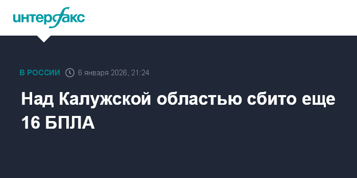 Москва. 6 января. INTERFAX.RU - Губернатор Калужской области Владислав Шапша сообщил об уничтожении над регионом еще 16 беспилотников.