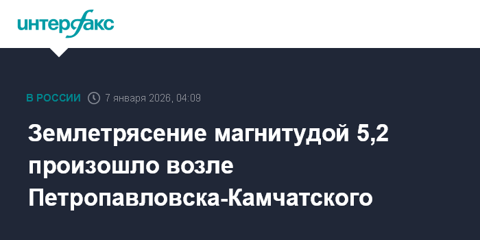Москва. 7 января. INTERFAX.RU - Сейсмологи зарегистрировали землетрясение магнитудой 5,2 в Авачинском заливе у восточного побережья Камчатки, сообщает Камчатский филиал Единой геофизической службы РАН на своем сайте.