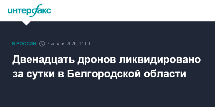 "С 07:00 ч. 6 января по 07:00 ч. 7 января ликвидированы 12 беспилотников", - написал он в своем телеграм-канале в среду.