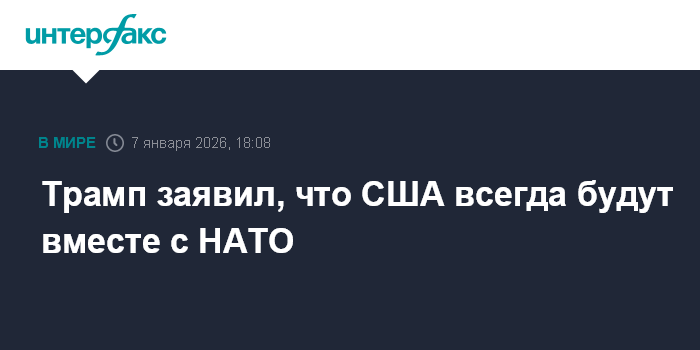Москва. 7 января. INTERFAX.RU - Американский президент Дональд Трамп в среду пообещал, что США никогда не оставят НАТО наедине с внешними угрозами.