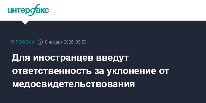 Планируется ввести административную ответственность за уклонение иностранных граждан от медосвидетельствования, предусмотрев за это правонарушение штраф с возможностью выдворения по решению суда.