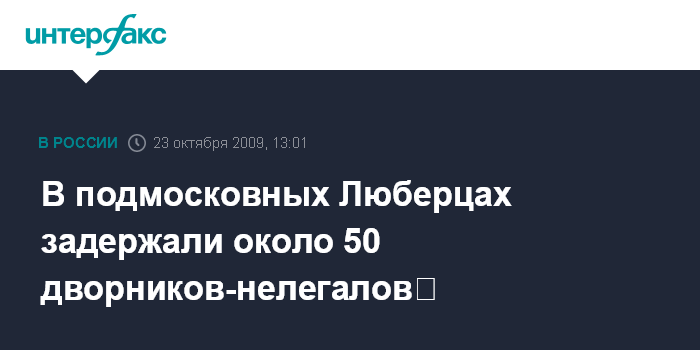 Москва. 23 октября. INTERFAX.RU - В подвале одного из жилых домов подмосковных Люберец выявлено около 50 нелегальных мигрантов из Средней Азии, работавших дворниками, сообщил "Интерфаксу" официальный представитель управления ФМС по Московской области Виталий Стрельцов в пятницу. По его словам, нелегалы работали дворниками в Люберцах, жили в подвале, в котором они и были задержаны. Стрельцов также отметил, что органы жилищно-коммунального хозяйства города, которые приняли на работу нелегалов и платили им зарплату, в настоящее время отказываются от них. В настоящее время в отношении 10 человек материалы переданы в суд для решения вопроса о депортации задержанных за пределы РФ.