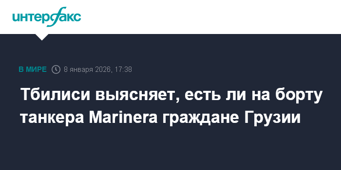 "Министерство проводит соответствующую работу по уточнению информации, распространенной в открытых источниках, о наличии граждан Грузии среди экипажа танкера Marinera, задержанного США в Атлантическом океане 7 января 2026 года. На данном этапе министерство не получало никакой информации о задержании граждан Грузии", - говорится в сообщении.