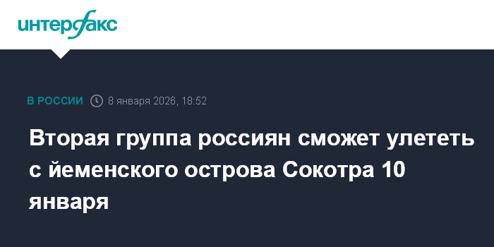 Вторая группа россиян сможет улететь с йеменского острова Сокотра 10 января