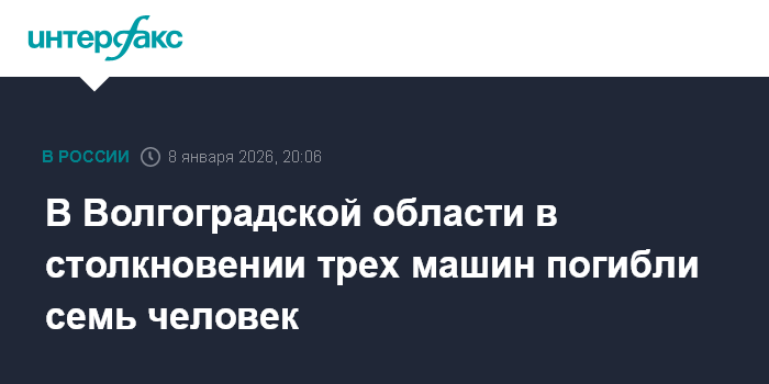 Москва. 8 января. INTERFAX.RU - В Михайловском районе Волгоградской области столкнулись три автомобиля и погибли семь человек, сообщает пресс-служба ГУ МЧС по региону.