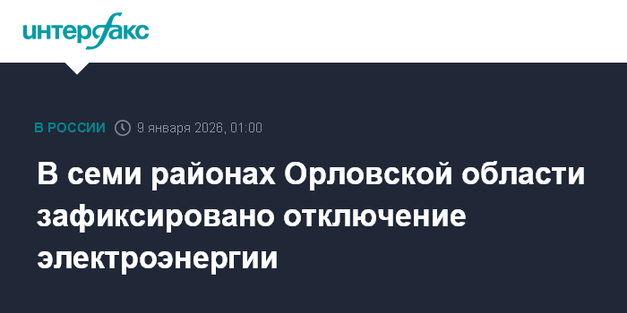 Москва. 9 января. INTERFAX.RU - В семи районах Орловской области зафиксировано отключение электричества, работает 51 аварийная бригада, сообщил губернатор региона Андрей Клычков.
