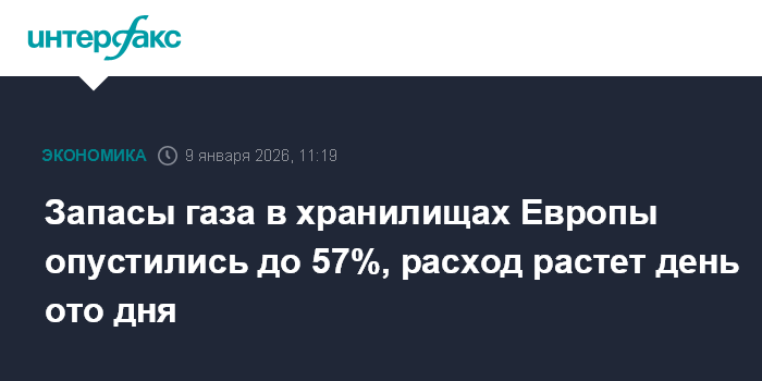 Москва. 9 января. INTERFAX.RU - Расход газа из подземных хранилищ (ПХГ) Европы в первую неделю года стабильно в два раза превышает средний показатель за те же дни за последние пять лет.