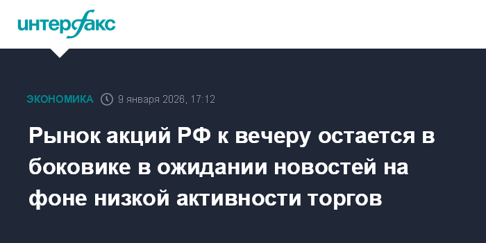 Рынок акций РФ к вечеру остается в боковике в ожидании новостей на фоне низкой активности торгов