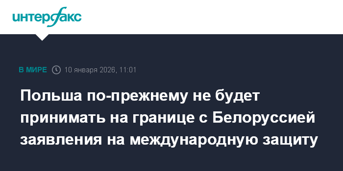 Москва. 10 января. INTERFAX.RU - Польша продлила приостановку приема на польско-белорусской границе заявлений от иностранцев на международную защиту, сообщил глава МВД Польши Марцин Кервиньский.