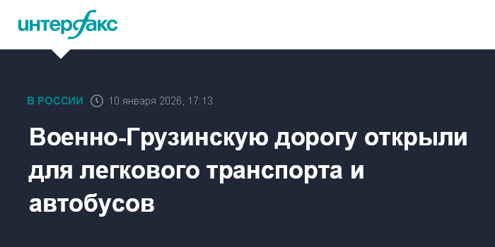 "В связи с расчисткой дорожного полотна на территории Грузии, возможностью обеспечения безопасного проезда автотранспортных средств (...) разрешено движение легковых автотранспортных средств и автобусов, за исключением большегрузного автотранспорта, на участке город Владикавказ - населенный пункт Ларс в обоих направлениях с 16:25 по Москве 10 января", - говорится в сообщении.