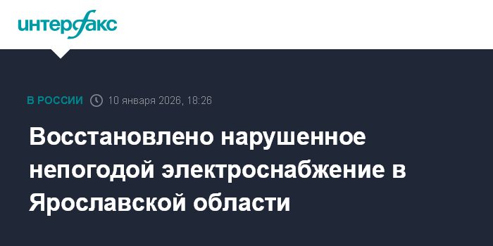 Москва. 10 января. INTERFAX.RU - Энергетики восстановили электроснабжение потребителей Ярославской области после сильного снегопада, сообщила пресс-служба филиала "Россети Центр" - "Ярэнерго" в субботу.