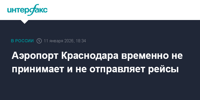Москва. 11 января. INTERFAX.RU - Временные ограничения на прием и выпуск самолетов введены в аэропорту Краснодара, сообщил в воскресенье представитель Росавиации Артем Кореняко в своем телеграм-канале.