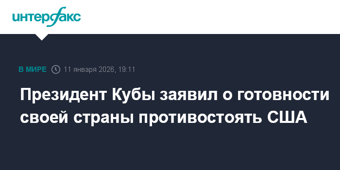 Москва. 11 января. INTERFAX.RU - Президент Кубы Мигель Диас-Канель заявил в воскресенье, что страна готова и дальше противостоять агрессии со стороны США.
